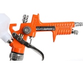 Комплектация: Краскопульт. Бачок. Переходник. Инструмент для обслуживания краскопульта.. Особенности: Система распыления High Pressure (HP): высокое входное давление и низкий расход воздуха позволяет использовать краскопульт с бытовыми компрессорами. Получается однородный факел идеальной формы. Регулировки формы факела и хода курка делает.. Вес нетто: 0.58. Расход воздуха: 225. Сопло: 1.3. Объем бака: 0.6. Материал бака: пластик. Посадочный размер (для коннектора): 1/4. Расположение бака: верхнее. Технология распыления: HP. Коннектор: рапид. Габариты упаковки (ед) ДхШхВ: 0.13x0.13x0.23. Вес упаковки (ед): 0.6. Гарантия: 6 мес.. Давление: 3 - 5 Бар. Расход воздуха: 225 л/мин. Вес нетто: 0.58 кг. Объем бака: 0.6 л. Давление: 3 - 5 Бар. Сопло: 1.3 мм