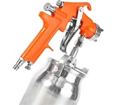 Краскопульт пневматический с верхним бачком DEKO DKSG01 (500мл, металл) используется для обработки поверхности водно-меловыми и водно-известковыми составами при строительно-отделочных работах, при опрыскивании и побелке садов, дезинфекции помещений. Сопло 1,5 мм Рабочее давление 3-4 бар Объем 500 мл