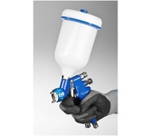 Вес (кг): 1.9 Диаметр сопла (мм): 2.0 / 2.5 / 3.0 Максимальная вязкость краски (DIN): 70 Мощность (Вт): 500 Объем бака (л): 0,9 Производительность (л/мин): 0,8 Напряжение (В): 220 Способ распыления: HVLP Регулировка интенсивности распыления: да Регулировка формы факела: да Регулировка направления факела: да