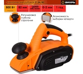 Рубанок Зубр ЗР-750-82 - простой и надежный инструмент, который прекрасно строгает и выравнивает поверхности. Бесступенчатая регулировка глубины строгания и параллельный упор обеспечивают точность в работе. Имеется кнопка блокировки выключателя, что обеспечивает защиту от случайного включения инструмента. Ножи изготовлены из быстрорежущей стали и имеют двустороннюю заточку, что гарантирует их долгий срок службы. Вес, кг 3,25. Мощность, Вт 750. Ширина обработки, мм 82. Регулировка глубины строгания .Глубина строгания, мм 0-2. Число оборотов, об/мин 16000.