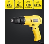 400 Вт; 220/50 В/Гц; 0-800 об/мин; Быстрозажимной патрон; диаметр сверла 10 мм; Максимальный диаметр сверления в древесине 25 мм; Максимальный диаметр сверления в стали 10 мм; регулировка скорости; реверс