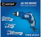 Рег.оборотов 0-3000об/мин, 600Вт, мах ф сверла 10мм, коробка