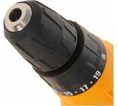 Практичная модель с малым весом и высокой производительностью для строительной площадки и производства домашних ремонтных работ. Повышение силы крутящего момента на тридцать процентов по сравнению с обычными дрелями-шуруповертами до 35 Нм позволяет работать с любым материалом от древесины до металлопроката. Расширение регулировки силы крутящего момента до 20 ступеней позволяет устанавливать любой крепеж без его повреждения и вдавливания в материал. Муфта настройки обеспечит точную фиксацию любого крепежа на одинаковую глубину при серийном закручивании. Широкий выключатель с фиксирующей кнопкой разработан специально для режима непрерывной работы. Переключаемый двухскоростной редуктор выдает оптимальный крутящий момент для закручивания или высокую скорость сверления. Наличие реверса и мгновенной остановки патрона повышают качество выполняемых работ. Применение в конструкции подшипников от лучших мировых производителей, усиленные шестерни редуктора с поверхностным упрочнением и бронированный ротор гарантируют до