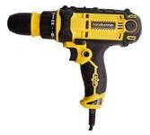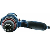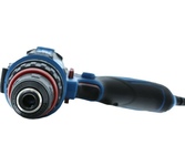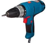 Особенности: Дрель-шуруповерт Тип патрона: быстрозажимной Дополнительные режимы работы: сверление Работа в стойке сверлильного станка Реверс Фиксация шпинделя Электронная регулировка частоты вращения Блокировка кнопки включения Технические данные: Питание: сеть Количество скоростей работы: 2 Диаметр патрона: 1.5 - 13 мм Максимальное число оборотов холостого хода: 1500 об/мин Максимальный крутящий момент: 45 Нм Потребляемая мощность: 450 Вт Максимальный диаметр сверления (дерево): 20 мм Максимальный диаметр сверления (металл): 10 мм Длина кабеля питания: 4 м Вес: 1.59 Комплектация: Запасные угольные щетки