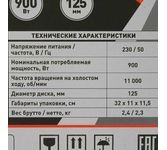 Мощность: 900. Регулировка частоты оборотов: нет. Диаметр шлифовального круга: 125. Резьба шпинделя: M14. Система гашения вибрации: нет. Блокировка шпинделя: нет. Плавный пуск: нет. Защита от непреднамеренного включения: есть. Поворот рабочей головки: нет. Вес товара: 2.3. Особенности: Дополнительная защита электродвигателя от пыли. Усиленный редуктор в металлическом корпусе. Вспомогательная боковая рукоятка.. Комплект поставки: Углошлифовальная машина, инструкция.. Суперфланец: нет. Тип электропитания: от электросети. Габариты упаковки (ед) ДхШхВ: 0.32x0.11x0.11. Вес упаковки (ед): 1.75. Тип электрического двигателя: щеточный. Кейс в комплекте: нет. Бесключевая замена оснастки: нет. Датчик падения: нет. Защита двигателя от перегрева: нет. Класс инструмента: бытовой. Общее количество рукояток: 2. Количество скоростей: 1. Поддержание постоянных оборотов под нагрузкой: нет. Посадочный диаметр: 22.2. Предохранительная муфта: нет. Рукоятка с мягкой накладкой: нет. Система быстрого доступа к щеткам: нет. Фиксация