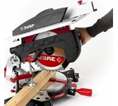 Торцовочная пила Зубр МАСТЕР ЗПТ-255-1800 ПЛ применяется для прямого, косого и комбинированного пиления, а также пиления под наклоном. Подходит для резки таких материалов, как древесина, пластик, тонкостенный алюминий. Лазерная подсветка линии реза позволяет увеличить точность пропила. Благодаря сдвижной голове и диску большого диаметра достигается увеличенная ширина реза. Фиксирующийся в любом положении поворотный стол и удобная регулировка наклона облегчают установку угла пиления. Наличие лазера. Габариты, мм 790x480x400. Длина кабеля, м 2. Мощность, Вт 1800 .Вес, кг 13 Max ширина пропила под углом 90°, мм 130. Max ширина пропила под углом 45°, мм 210. Max глубина пропила под углом 90°, мм .90 Max глубина пропила под углом 45°, мм 55. Диаметр диска, мм 255 .Посадочный диаметр диска, мм 30. Тип двигателя щеточный .Горизонтальное перемещение.