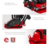 10,5кН; 5600уд/мин; 520х370мм; 25м/мин; 450м2/час; 20см; двигатель: Loncin G200F; 4,1кВт; 3600об/мин; 3,6/0,6л; ручной стартер; бензин АИ-92; бак системы орошения