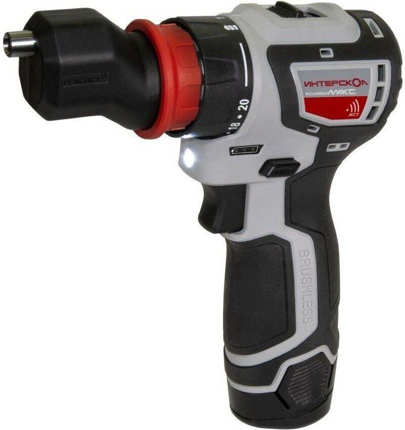 [Дрель, Шуруповерт] ИНТЕРСКОЛ ДА-10/12В 36 КомбиМАКС бесщеточная аккум. дрель-шуруп [687.2.2.79] Li-ion, кейс, 2 аккум., 2Ач, 4 насадки