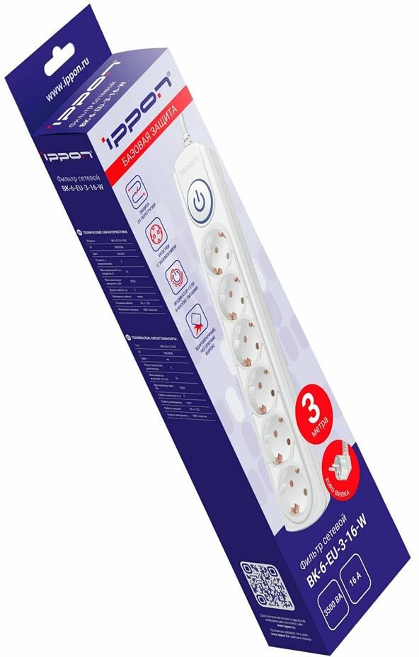 IPPON BK-6-EU-3-16-W 3м (6 розеток) белый (коробка)