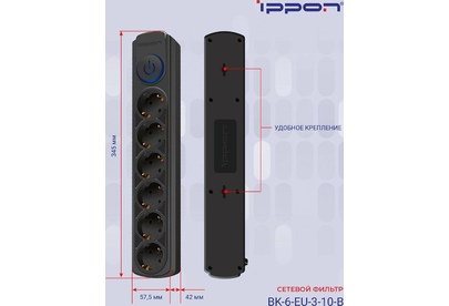 IPPON Сетевой фильтр BK-6-EU-3-10-B 3м (6 розеток) черный (коробка)