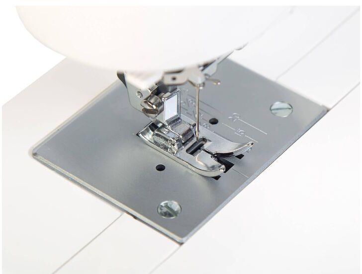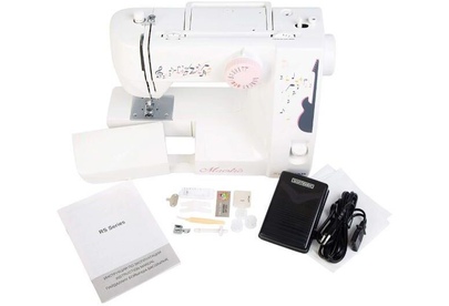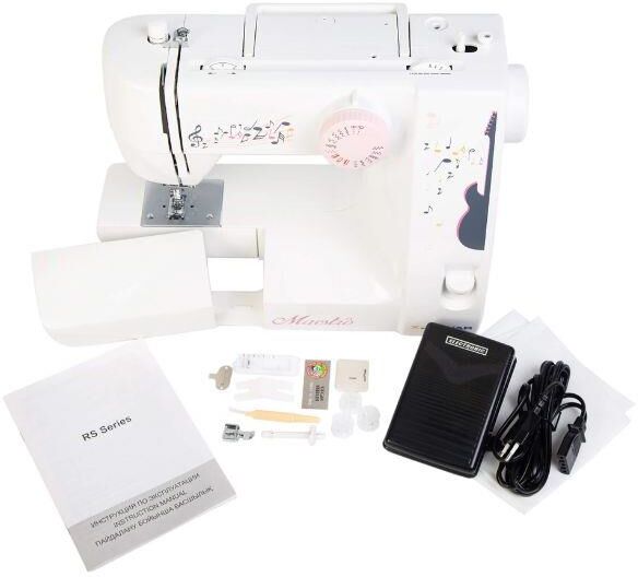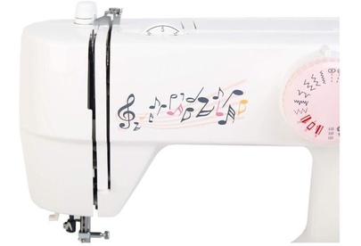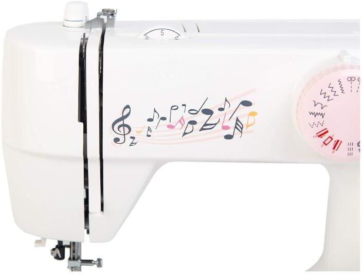 18 операций, вертикальный челнок, автоматический нитевдеватель, петля в полуавтоматическом режиме в четыре приема, максимальная ширина зигзага -5 мм и длина стежка 5 мм, регулировка натяжения верхней нити, регулируемое давление лапки на ткань, регулируем