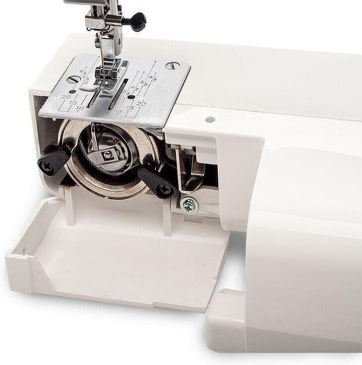 Тип машины: Электромеханическая; Тип челнока: Вертикальный; Тип петли: Полуавтомат; Количество швейных операций: 17; Количество петель: 1; Максимальная длина стежка: 4 мм; Максимальная ширина зигзага: 5 мм; Расположение катушечных стержней: Вертикальное; Встроенный нитеобрезатель; Переключатель нижнего транспортера; Два вертикальных катушечных стержня; Свободный рукав; Отсек для хранения аксессуаров; Светодиодное освещение; Максимальная скорость шитья: 750 ст./мин.; Потребляемая мощность: 60 Вт