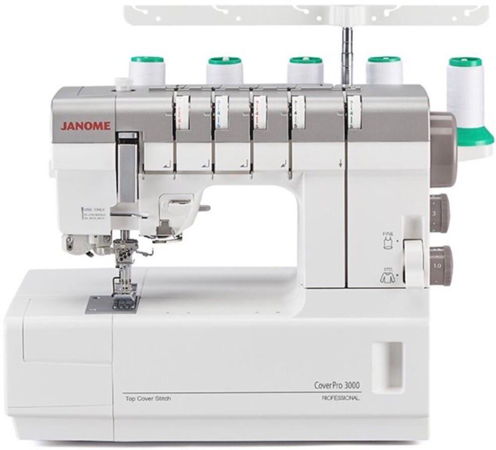Распошивальная машина, 3-х ниточный плоский шов (с верхним застилом), 2-х иголный широкий и узкий плоский шов, цепной стежок, встроенный направитель для швов с верхним застилом, встроенный 3-х позиционный заправщик нитей в иглу, усовершенствованная систем