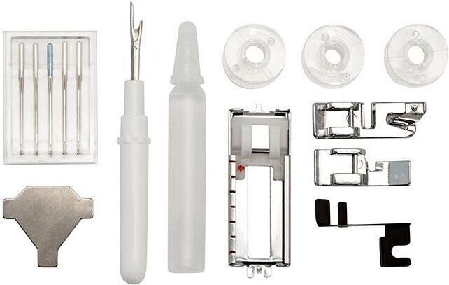 15 операций, петля п/авт., вертик. челнок, нитевдеватель,регул. давления лапки, мет.станина, жесткий чехол