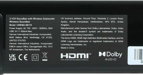 JBL Саундбар Cinema SB170 2.1 104Вт +116Вт черный