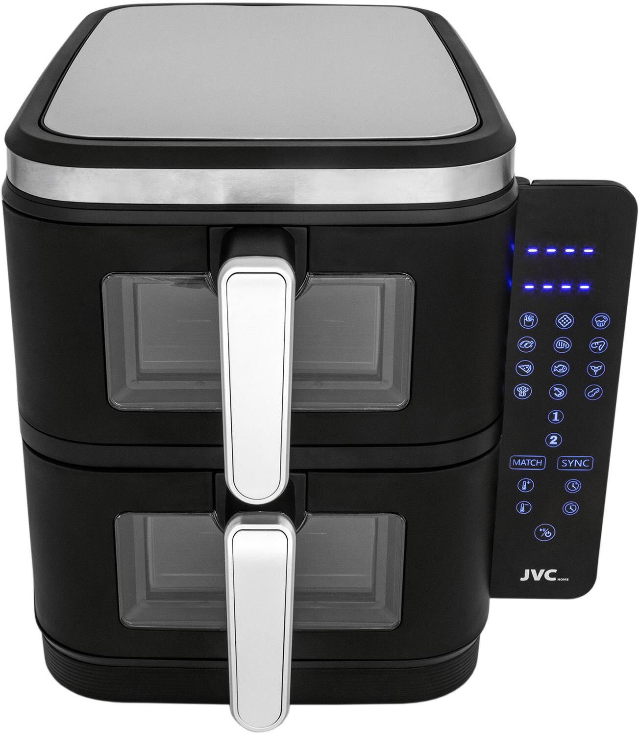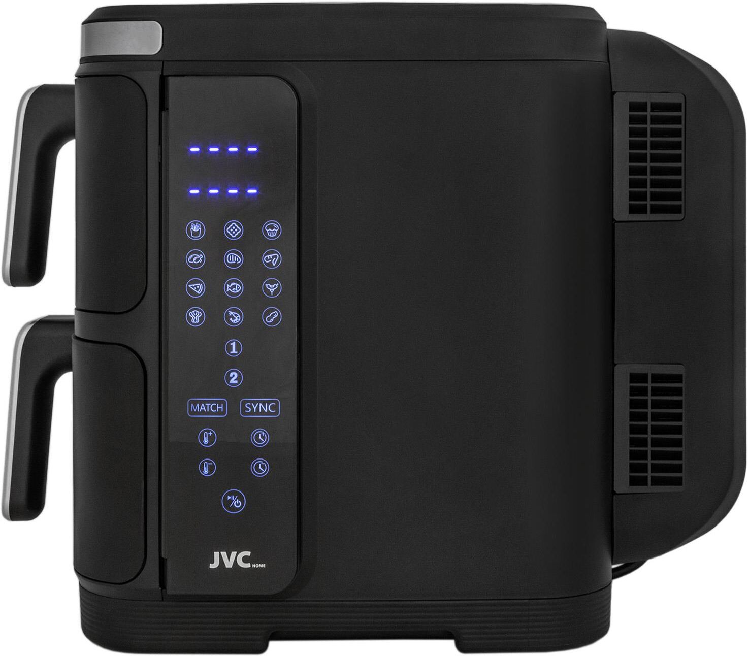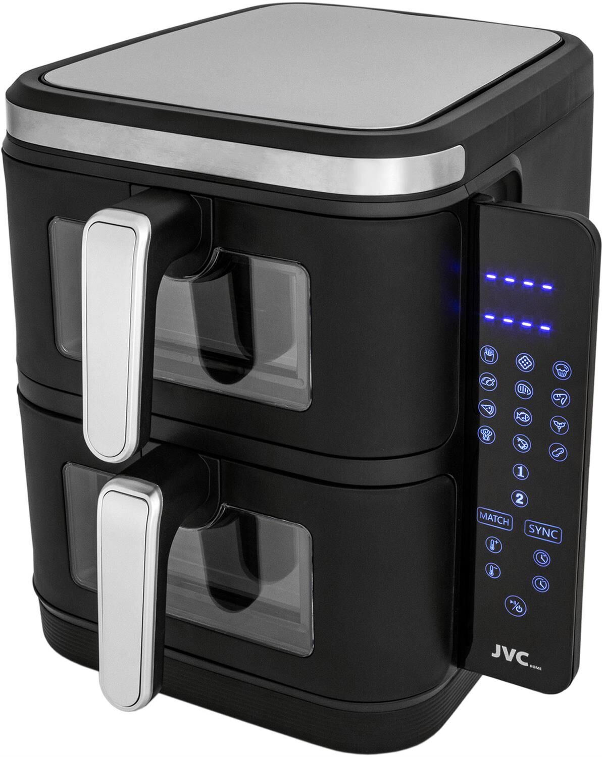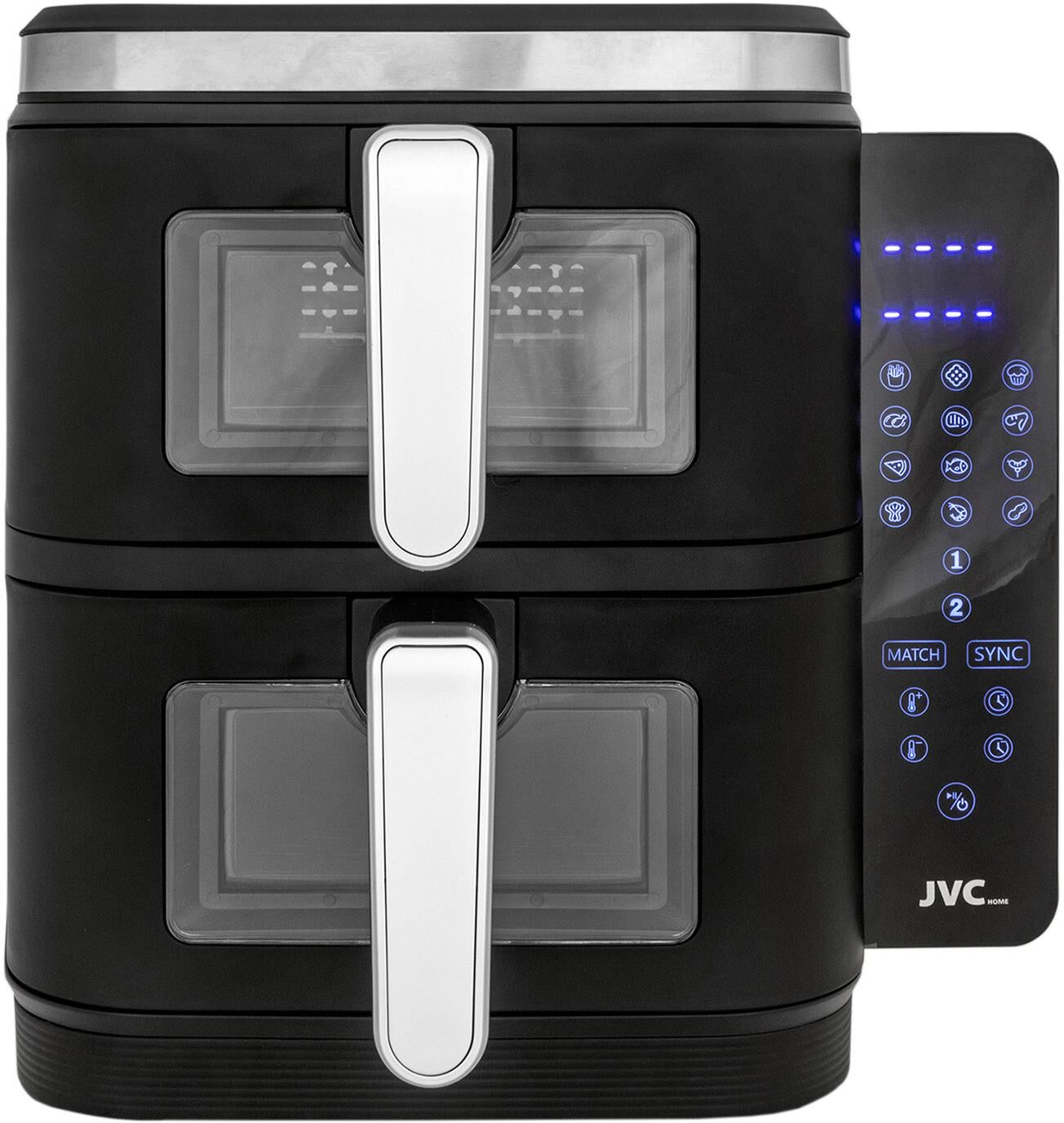 Аэрогриль вертикальный с 2-мя чашами, электронное управление, объем чаш 6 литров + 6 литров, мощность 3400 ватт, таймер, 12 автопрограмм, светодиодный сенсорный складной дисплей, смотровое окно, температура: от 60 до 200 градусов, одновременное приготовление разных блюд