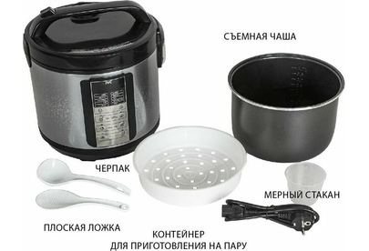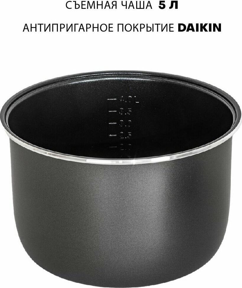 Мультиварка, объем чаши: 5л, мощность: 860 Вт, электронное управление, цифровой светодиодный дисплей, чаша с антипригарным покрытием: Daikin, количество автоматических программ: 11, количество программ ручной настройки: 145, функция "МУЛЬТИПОВАР", функция "СМАРТШЕФ плюс", термоизолированный корпус, поддержания температуры: до 12 часов, отложенный старт: до 24 часов