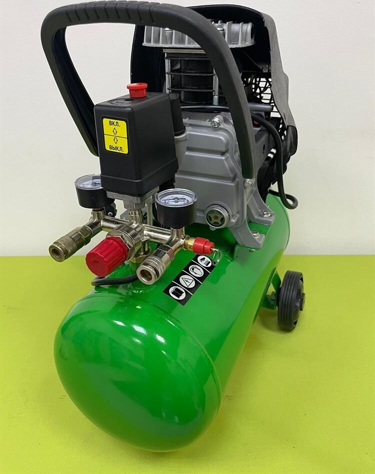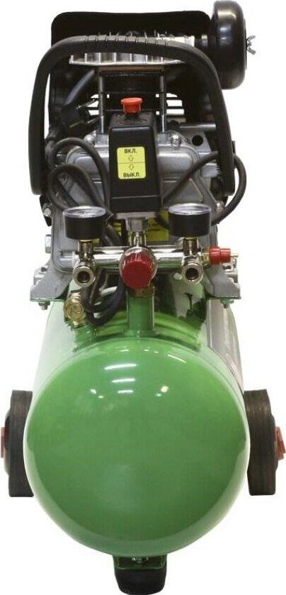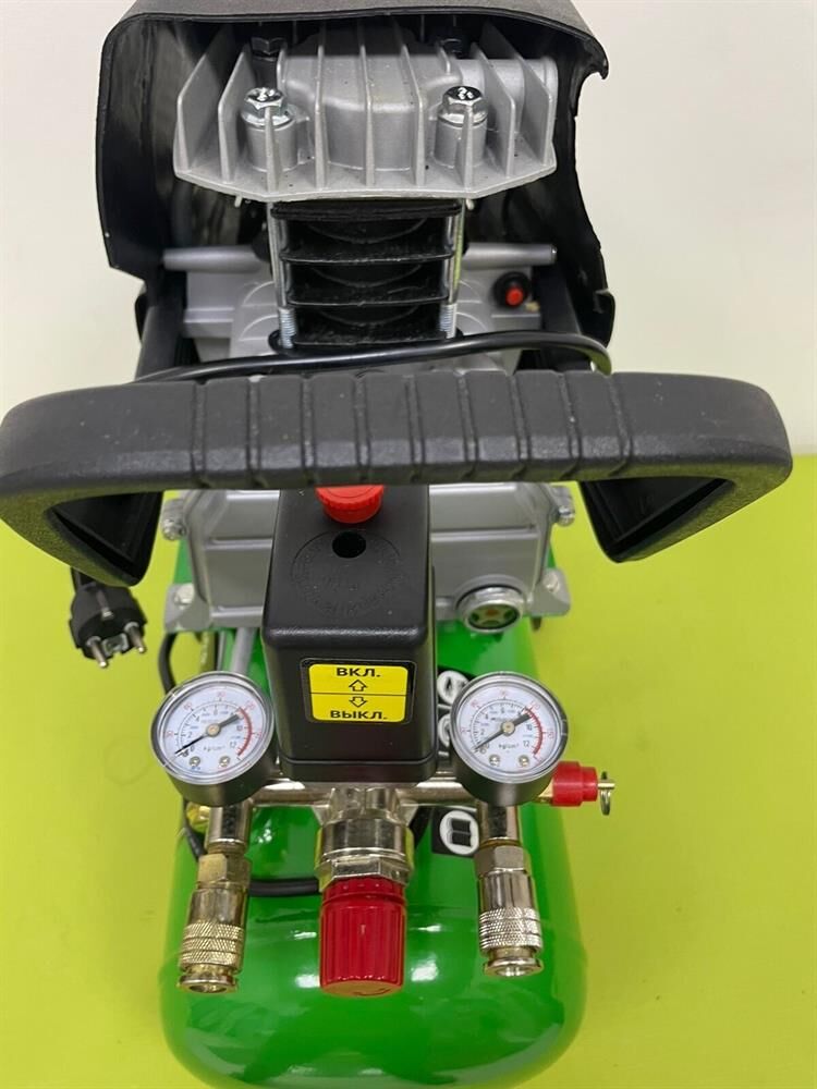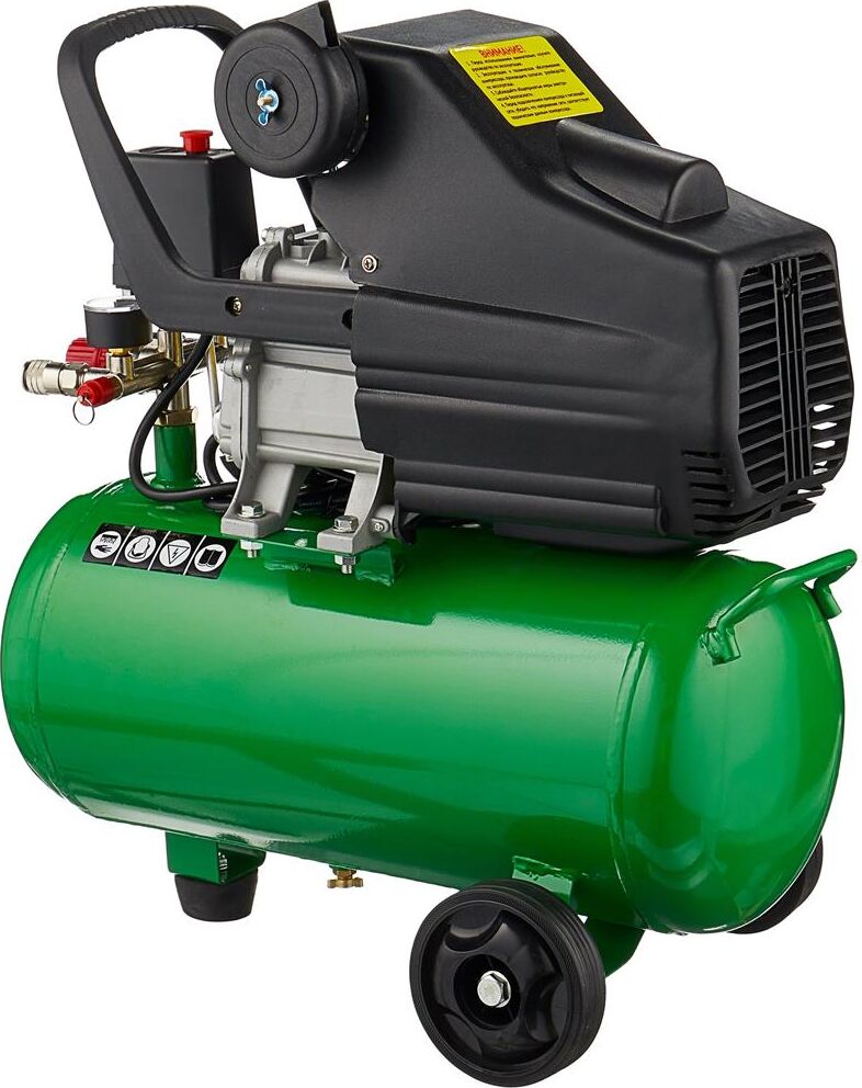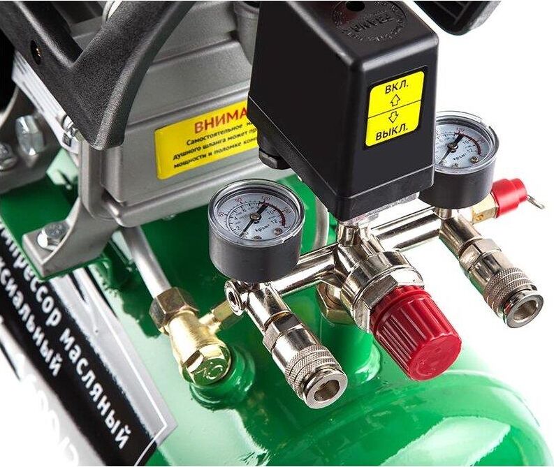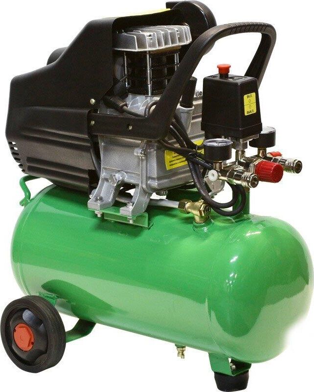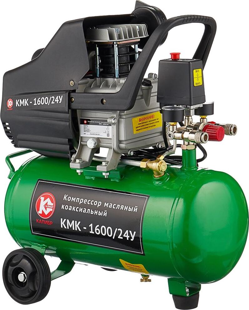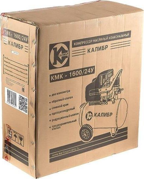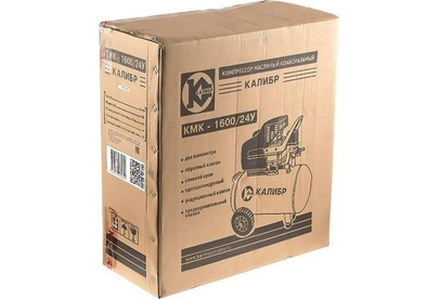 Компрессор масляный коаксиальный Калибр КМК-1600/24У предназначен для обеспечения оборудования, аппаратуры и инструмента, применяемого в бытовых целях, сжатым атмосферным воздухом. Использование компрессора позволяет значительно сэкономить электроэнергию, механизировать труд и повысить качество работ, за счёт подключаемого пневмоинструмента. Компрессор не предназначен для промышленного использования и строительных работ. Характеристики Напряжение питания 220 В, Частота 50 Гц, Номинальная мощность двигателя ,1600 Вт Количество оборотов 2850 об/мин,Двигатель асинхронный, Производительность (по всасыванию) 198 л/мин, Рабочее давление сжатого воздуха0.8 МПа/8 бар ,Количество ступеней 1, Число цилиндров компрессора 1 ,Объём ресивера24 л, Тип смазочного масла залитого производителем L-DAB 46, Габариты ДхШхВ 530х245х590 мм, Вес (брутто/нетто) 20.0/18.0 кг