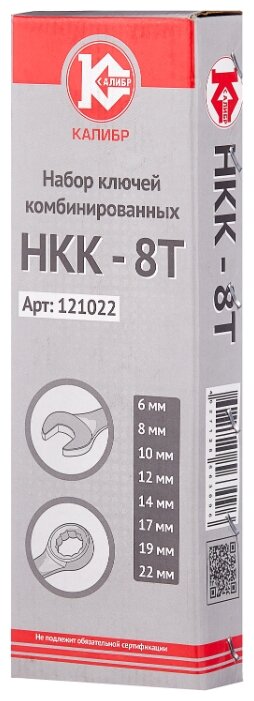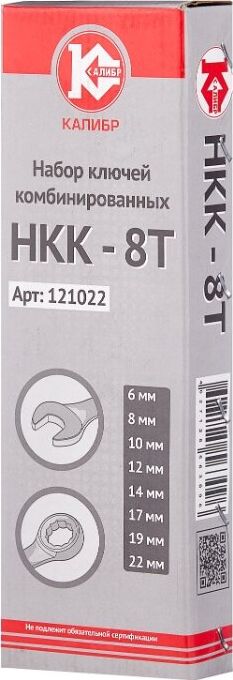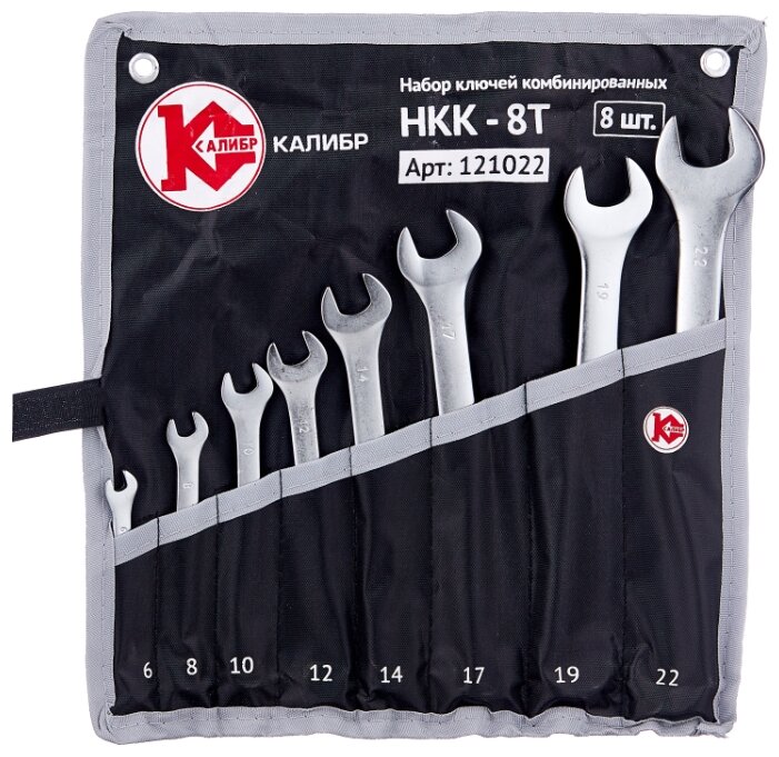 КАЛИБР НКК-8Т (8 штук, CrV) Набор ключей комбинированных
