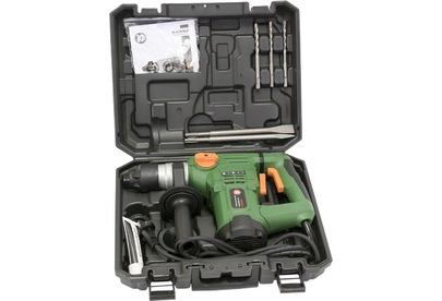 Потребляемая мощность 1500 Вт. Частота ударов 4200 уд/мин. Максимальный диаметр сверления: бетон х металл х дерево 36 х 13 х 42 мм. Энергия единичного удара 5,5 Дж. Число оборотов на холостом ходу 950 об/мин. Система зажима SDS-plus. Ключевой патрон 1/2-20UNF, диаметр сверла 1,5-13 мм. Максимальный уровень вибрации (по бетону в режиме долбления) 13,2 м/с2. Уровень звукового давления 92 дБ(А). Класс безопасности (ГОСТ Р МЭК 60745-1-2011) II. Электродвигатель Однофазный коллекторный. Номинальное напряжение/Частота 230 В/50 Гц. Габариты в упаковке (ДхШхВ) 370х115х330 мм