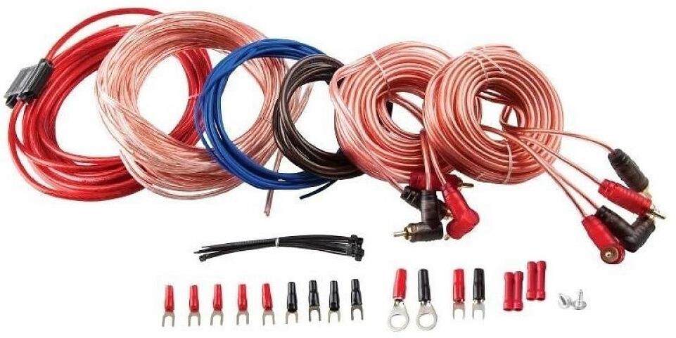 Тип установочный комплект для 4-х канального усилителя Cиловой кабель (калибр)- 10 Cиловой кабель (+) материал- медно-алюминиевый Cиловой кабель (+) длина- 5 Cиловой кабель (+) цвет- красной Cиловой кабель (+) установлен- эластичный в сборе с держателем ATC Cиловой кабель (-) материал- медно-алюминиевый Cиловой кабель (-) длина- 1 Cиловой кабель (-) цвет- черной Cиловой кабель (-) установлен- эластичная изоляция Тип предохранителя- ATC Предохранитель (А)- 30A Кабель управления- 18AWG медно-алюминиевый кабель управления в изоляции синего цвета – 5 метров Акустический кабель- 18AWG CCA в прозрачной изоляции - 10 метров RCA кабель- 2x(2RCA-2RCA) кабель коаксиальный c прямыми/угловыми наконечниками - 5 метров Клемма кольцевая- для силового кабеля сечением 8AWG - 2 штуки Клемма U-образная- 11 штук Клеммы для динамиков- Изоляционный наконечник- 4x18AWG Стяжки- 10 штук