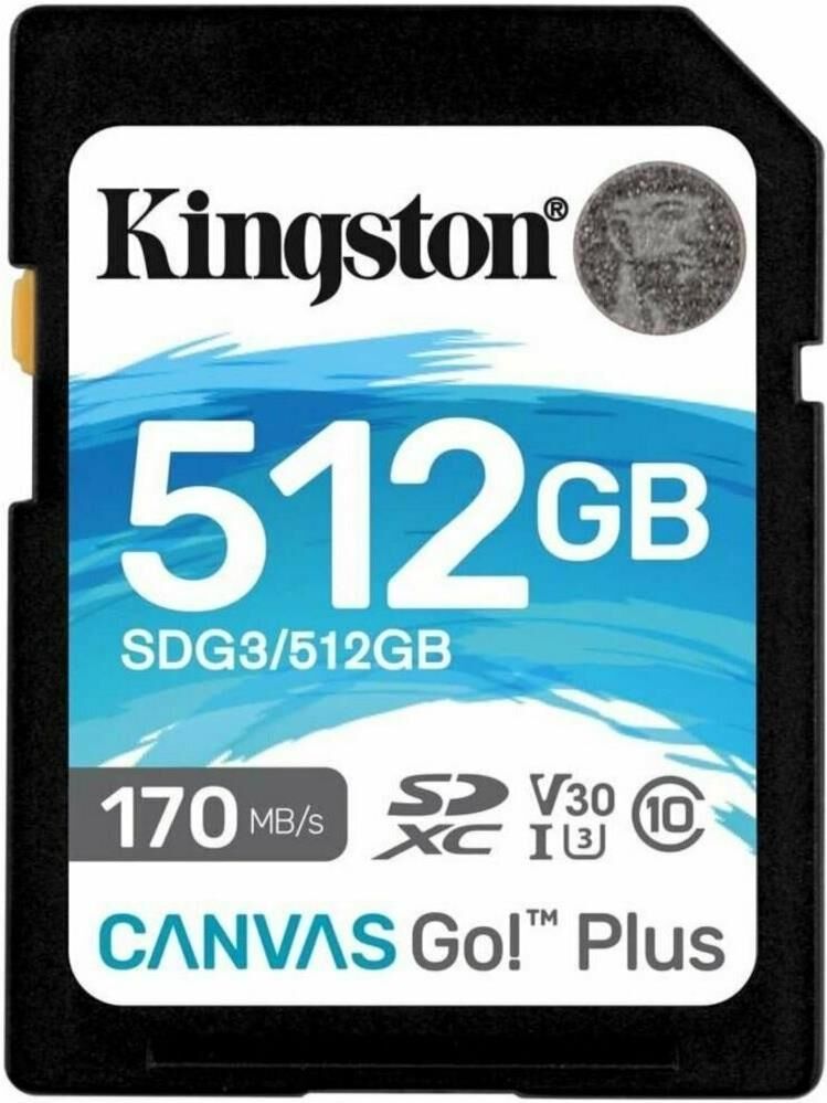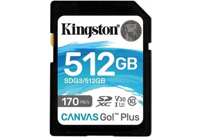 KINGSTON Карта памяти SDXC UHS-I U3 Canvas Go Plus 512 ГБ, 170 МБ/с, Class 10, SDG3/512GB, 1 шт., бе