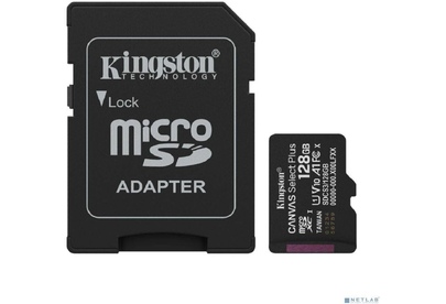 [Карта памяти ] Micro SecureDigital 128GB Kingston Canvas Select Plus Gen3 150MB/s A1, с адаптером