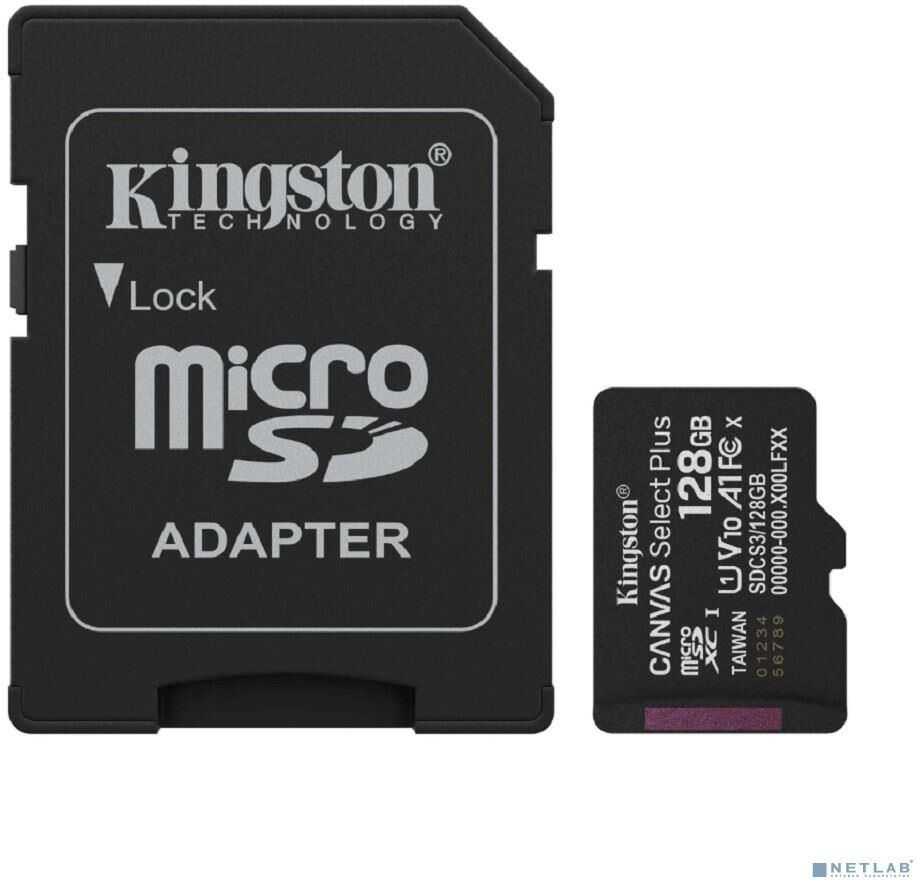 KINGSTON Micro SecureDigital 128GB Canvas Select Plus Gen3 150MB/s A1, с адаптером