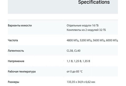 Тип памяти: DDR5. Тактовая частота: 5200. Радиатор охлаждения: есть. Количество модулей: 1. Тип поставки: Ret. Форм-фактор: DIMM. Поддержка ECC: не поддерживается. Буферизация: unbuffered. Количество контактов: 288-pin. Показатель скорости: PC5-41600. Скорость (SPD): 4800. Напряжение (SPD): 1.1В. Напряжение: 1.25В. Задержка (SPD): 40-39-39. Задержка: 40-40-40. Латентность (CAS): CL40. Габариты упаковки (ед) ДхШхВ: 0.17x0.055x0.015. Вес упаковки (ед): 0.02. Подсветка: нет. RAS to CAS Delay (tRCD): 40. Row Precharge Delay (tRP): 40. Объем одного модуля: 32. Пропускная способность: 41600. Суммарный объем памяти всего комплекта: 32. Технологии разгона памяти: XMP 3.0. Обозначение памяти: UDIMM. Гарантия: 999 мес.. Цвет радиатора: черный. Объем: 1х 32 ГБ. Частота: 5200 МГц. Тип поставки: Ret. Особенности: оснащается радиатором. Латентность: CL40. Тайминги: 40-40-40. Форм-фактор: UDIMM, 288-pin