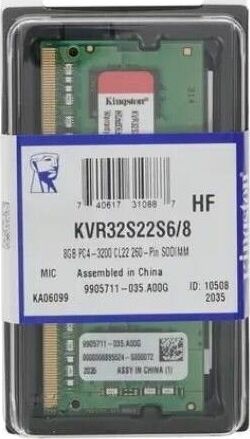 KINGSTON Оперативная память Valueram KVR32S22S6/8 DDR4 - 1x 8ГБ 3200МГц, для ноутбуков (SO-DIMM), Re