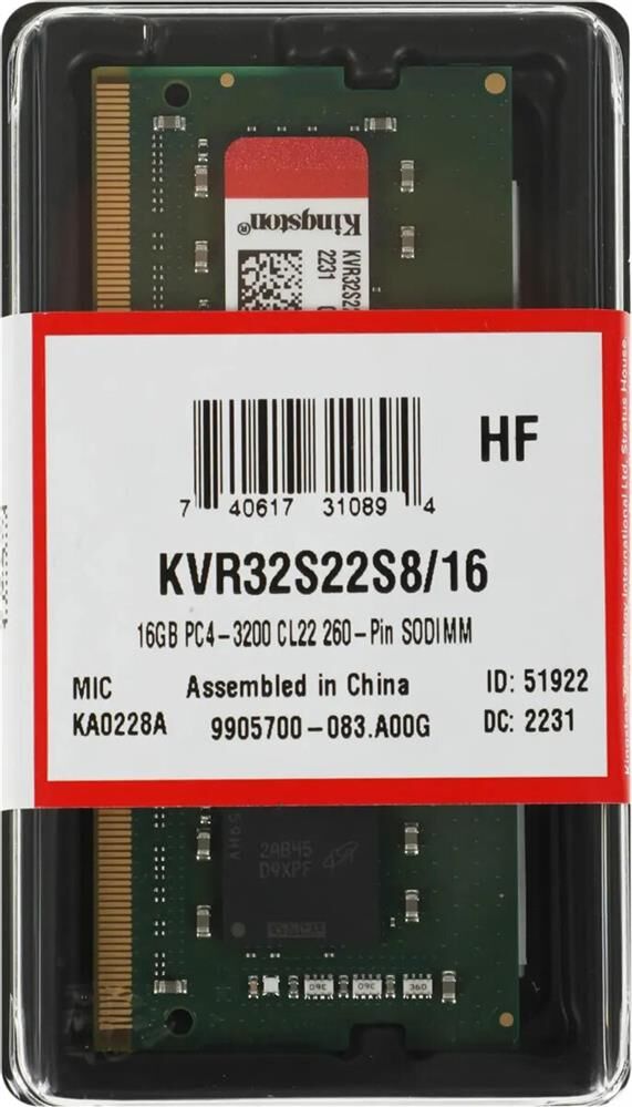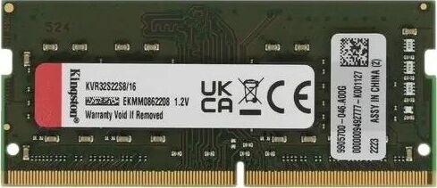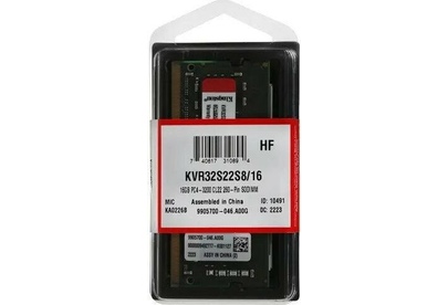 KINGSTON Оперативная память Valueram KVR32S22S8/16 DDR4 - 1x 16ГБ 3200МГц, для ноутбуков (SO-DIMM),