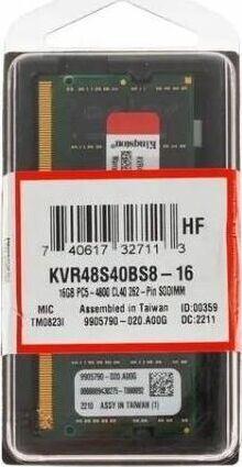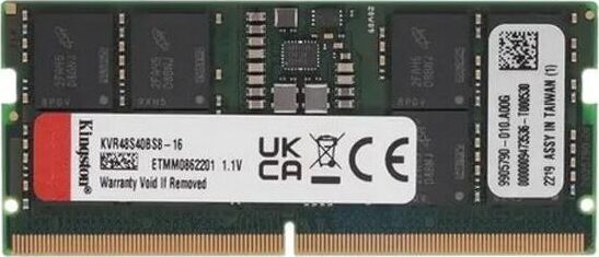 KINGSTON Оперативная память Valueram KVR48S40BS8-16 DDR5 - 1x 16ГБ 4800МГц, для ноутбуков (SO-DIMM),