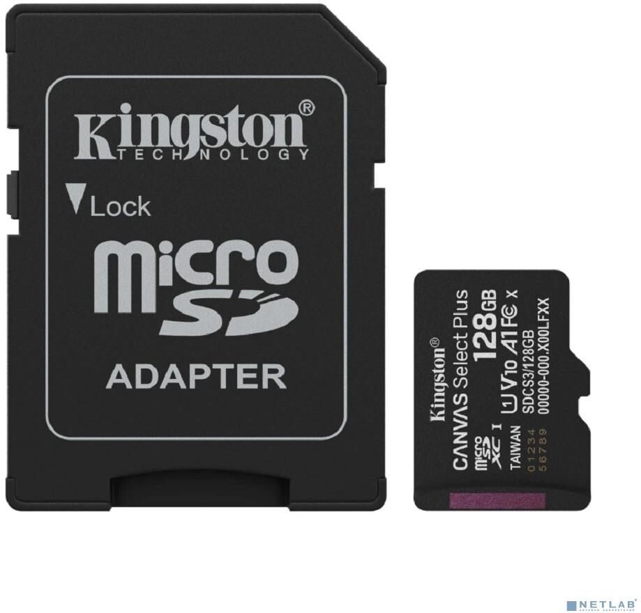 [Карта памяти ] Micro SecureDigital 128GB Kingston Canvas Select Plus Gen3 150MB/s A1, с адаптером