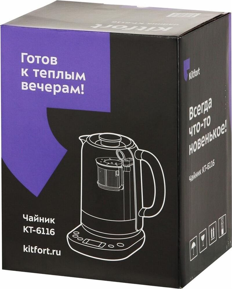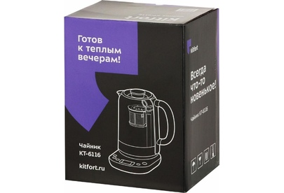 KITFORT Чайник электрический КТ-6116, 1.7л, стекло/металл/пластик