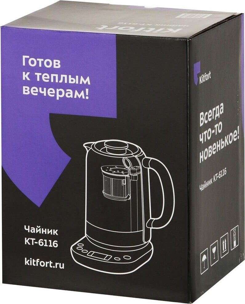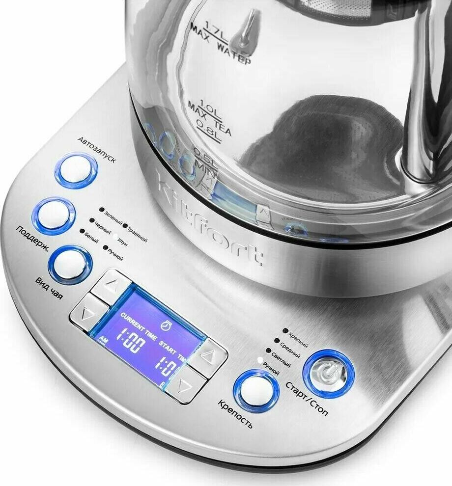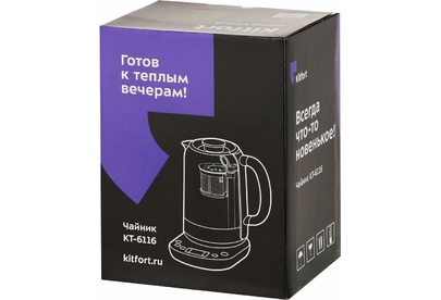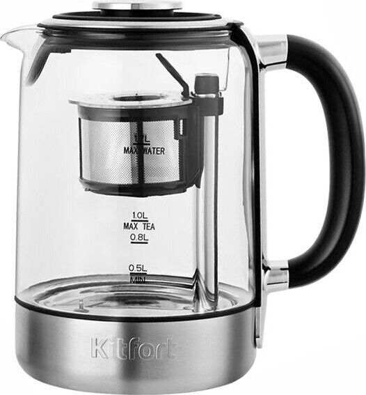 KITFORT Чайник электрический КТ-6116 1.7л. 2200Вт нержавеющая сталь/черный корпус: стекло/металл/пла