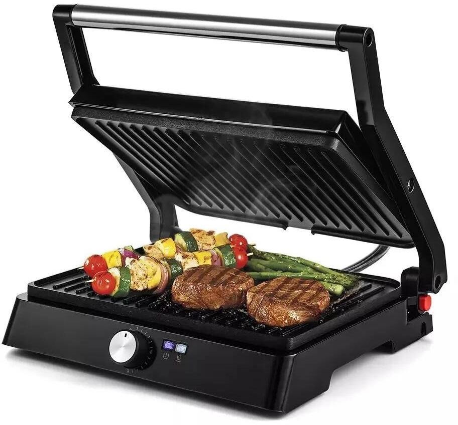 Тип управления: механическое. Антипригарное покрытие нагревательных частей: есть. Установка температуры приготовления: есть. Лоток для сбора жира: есть. Индикатор включения: есть. Автоматическое отключение (защитное): есть. Ненагревающаяся ручка: есть. Вес товара: 2.9. Раскрытие на 180 градусов: есть. Принадлежности в комплекте: Комплектация: Гриль — 1 шт. Поддон для сбора жира — 1 шт. Руководство по эксплуатации — 1 шт. Гарантийный талон — 1 шт. Коллекционный магнит — 1 шт.. Длина электрокабеля: 0.8. Габариты упаковки (ед) ДхШхВ: 0.375x0.17x0.375. Вес упаковки (ед): 3.67. Гарантия: 12 мес.. Цвет: черный и серебристый. Материал корпуса: нержавеющая сталь/пластик. Размеры (ШхВхГ): 33.5 х 12.1 х 32.3см. Мощность: 2200 Вт. Температура: 150 - 230 °С. Температура: 150 - 230 °С. Управление: механическое. Особенности: раскрытие на 180 градусов, лоток для сбора жира. Мощность: 2200 Вт