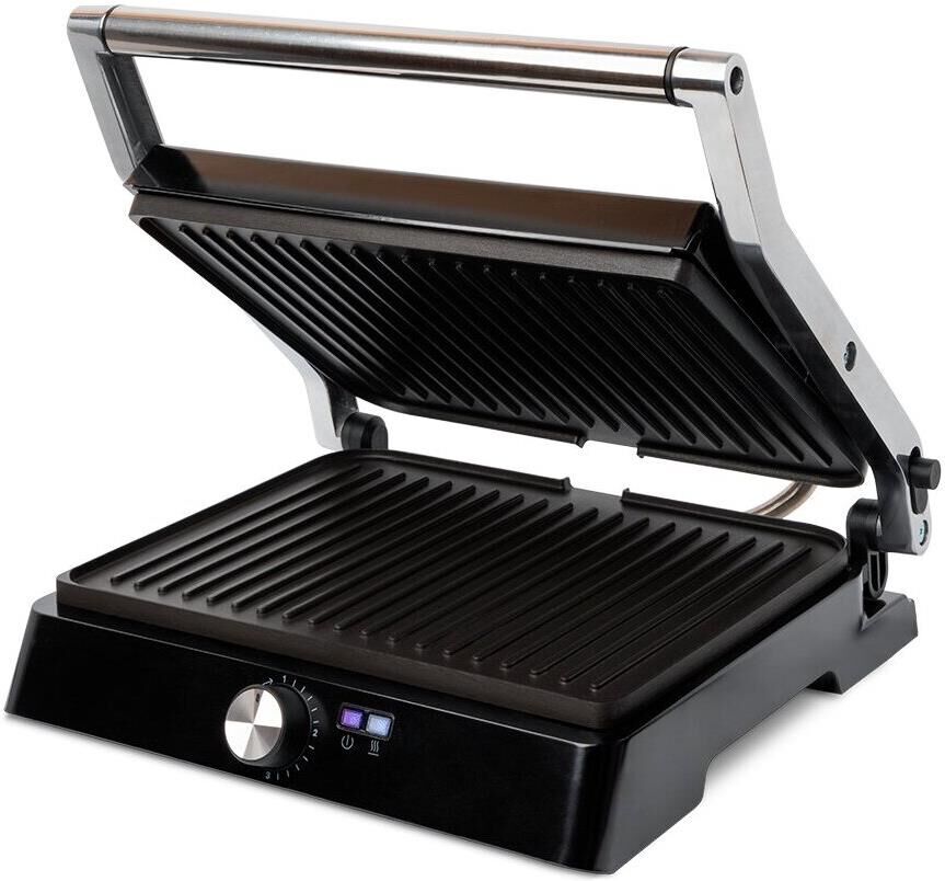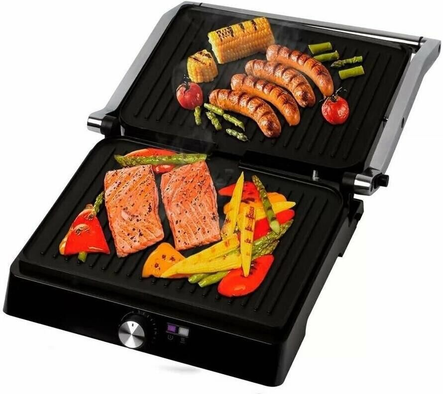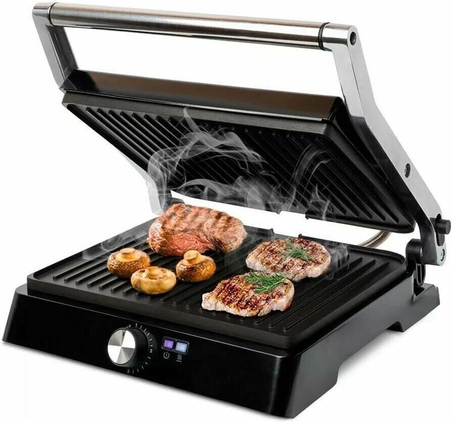 Тип управления: механическое. Тип нагревательного элемента: ТЭН. Ширина рабочей поверхности: 28.5. Длина рабочей поверхности: 22.5. Антипригарное покрытие нагревательных частей: есть. Установка температуры приготовления: есть. Лоток для сбора жира: есть. Индикатор включения: есть. Автоматическое отключение (защитное): есть. Ненагревающаяся ручка: есть. Вес товара: 2.9. Раскрытие на 180 градусов: есть. Принадлежности в комплекте: Комплектация: Гриль — 1 шт. Поддон для сбора жира — 1 шт. Руководство по эксплуатации — 1 шт. Гарантийный талон — 1 шт. Коллекционный магнит — 1 шт.. Длина электрокабеля: 0.8. Габариты упаковки (ед) ДхШхВ: 0.38x0.17x0.38. Вес упаковки (ед): 3.67. Гарантия: 12 мес.. Цвет: черный и серебристый. Материал корпуса: нержавеющая сталь/пластик. Размеры (ШхВхГ): 33.5 х 12.1 х 32.3см. Мощность: 2200 Вт. Температура: 150 - 230 °С. Мощность: 2200 Вт. Температура: 150 - 230 °С. Управление: механическое. Нагревательный элемент: ТЭН. Особенности: раскрытие на 180 градусов, лоток для сбора жира