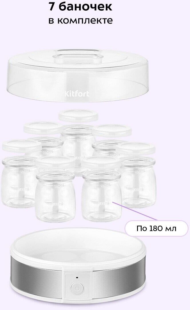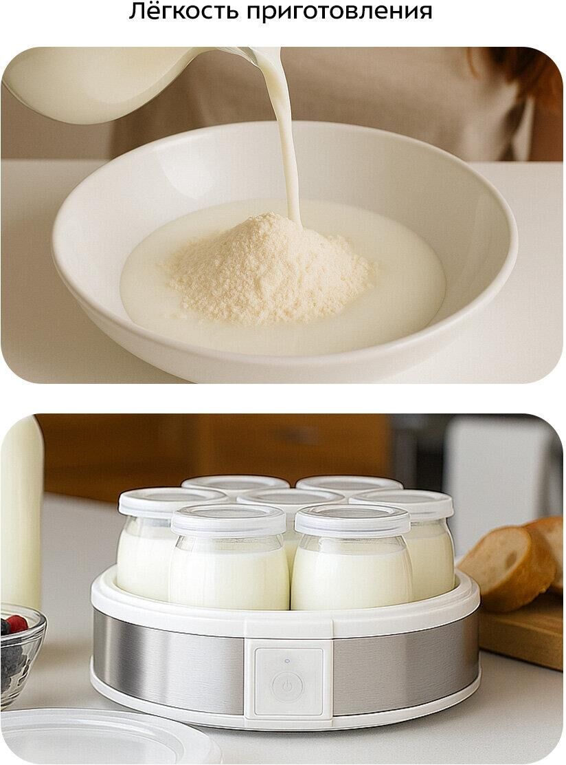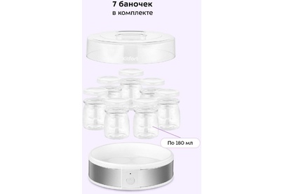 Мощность: 20. Количество баночек для йогурта: 7. Объём одной баночки: 180. Таймер: механический. Габариты упаковки (ед) ДхШхВ: 0.255x0.13x0.14. Вес упаковки (ед): 2.02. Страна производства: Китай. Гарантия: 12 мес.. Мощность: 20 Вт. Таймер: механический. Объём одной баночки: 180 г. Количество баночек: 7 шт