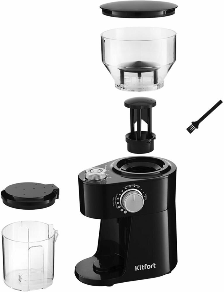 KITFORT Кофемолка КТ-741 200Вт сист.помол.:жернова вместим.:230гр черный