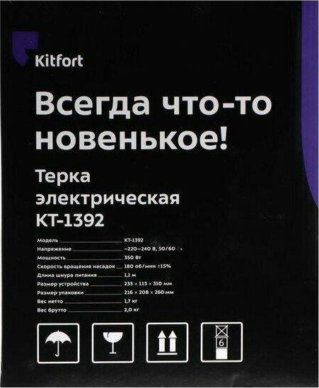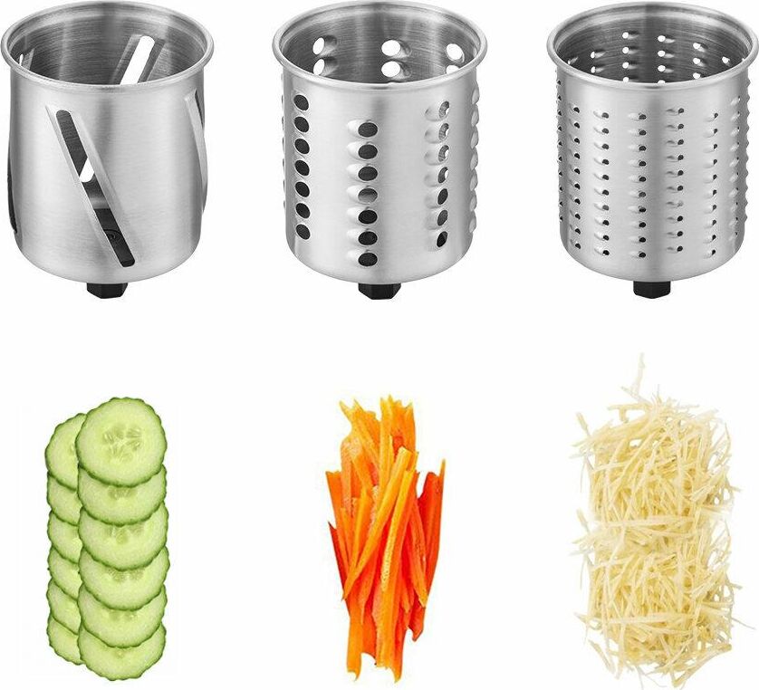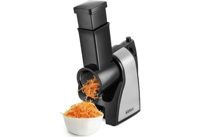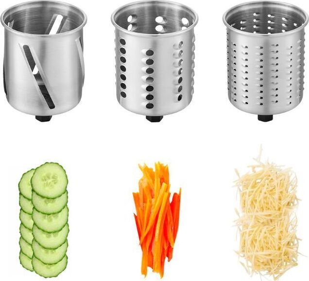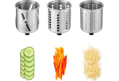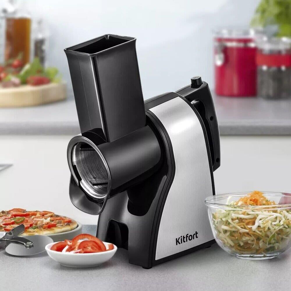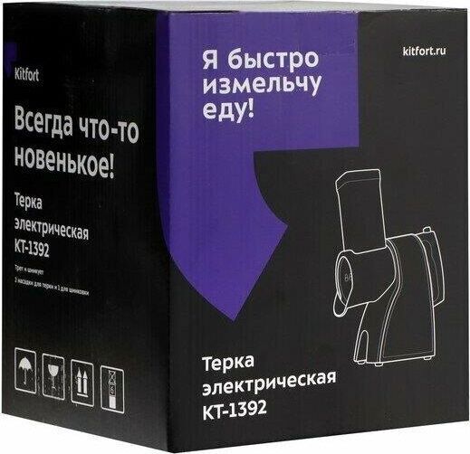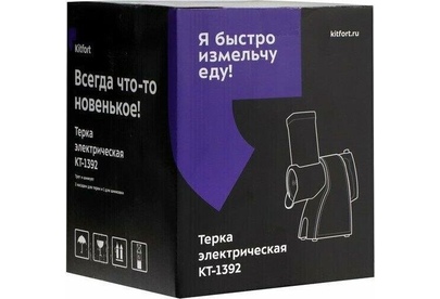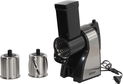 Электрическая тёрка предназначена для тёрки и шинковки овощей, фруктов и других пищевых продуктов в домашних условиях. Электрические терки безопасны и исключают возможность микротравм. Мощность 350 Вт. Количество скоростей 1. Количество вставок/дисков 3. Скорость вращения насадок 1200–1400 об/мин. Длина шнура 1 м. Материал корпуса металл/пластик.