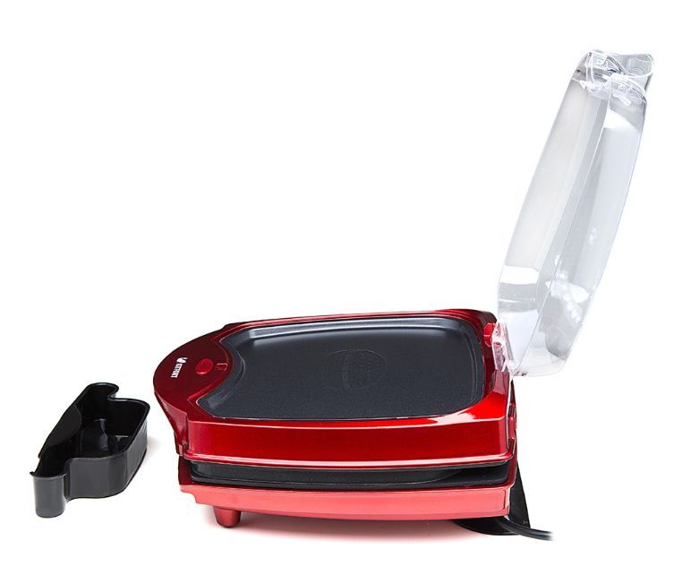 Мощность 1000 Вт. Тип управления механическое. Антипригарное покрытие нагревательных частей есть. Количество программ/режимов 2. Список режимов/программ приготовления двухсторонний, односторонний. Установка температуры приготовления есть. Длина электрокабеля 0.7 м. Цвет красный и черный.