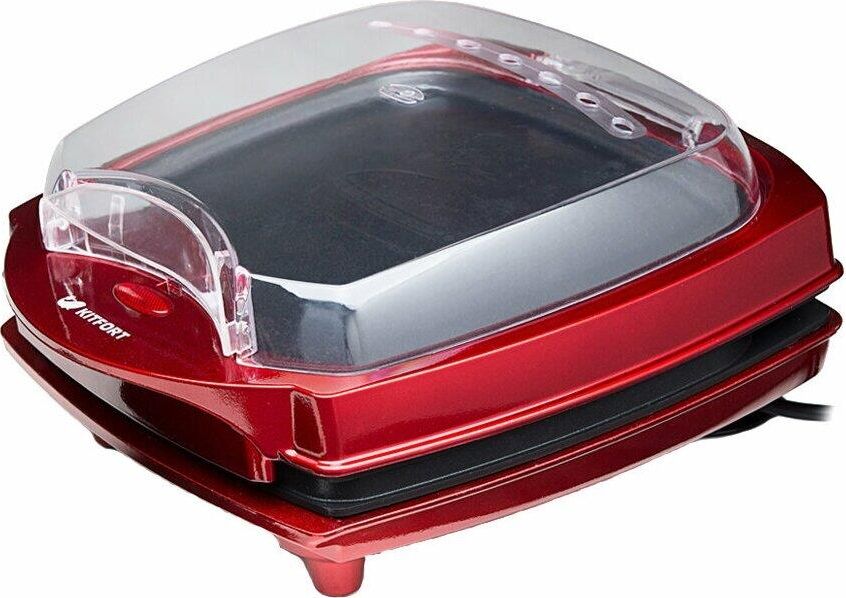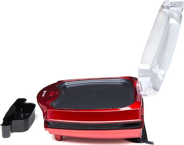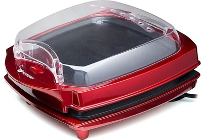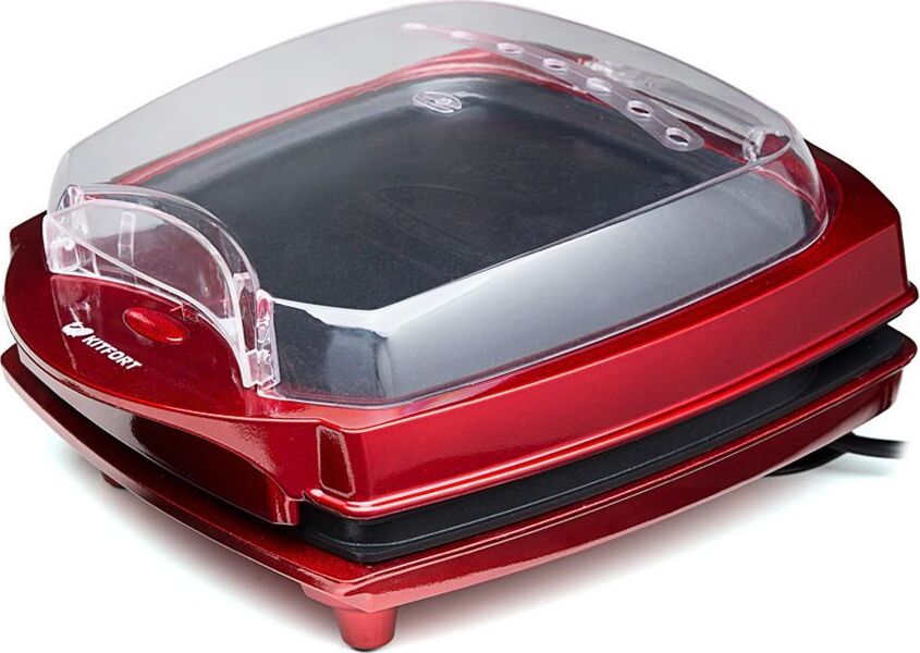 Мощность 1000 Вт. Тип управления механическое. Антипригарное покрытие нагревательных частей есть. Количество программ/режимов 2. Список режимов/программ приготовления двухсторонний, односторонний. Установка температуры приготовления есть. Длина электрокабеля 0.7 м. Цвет красный и черный.