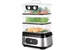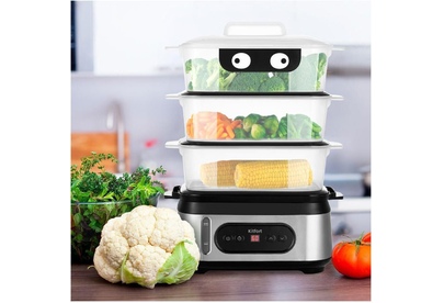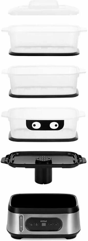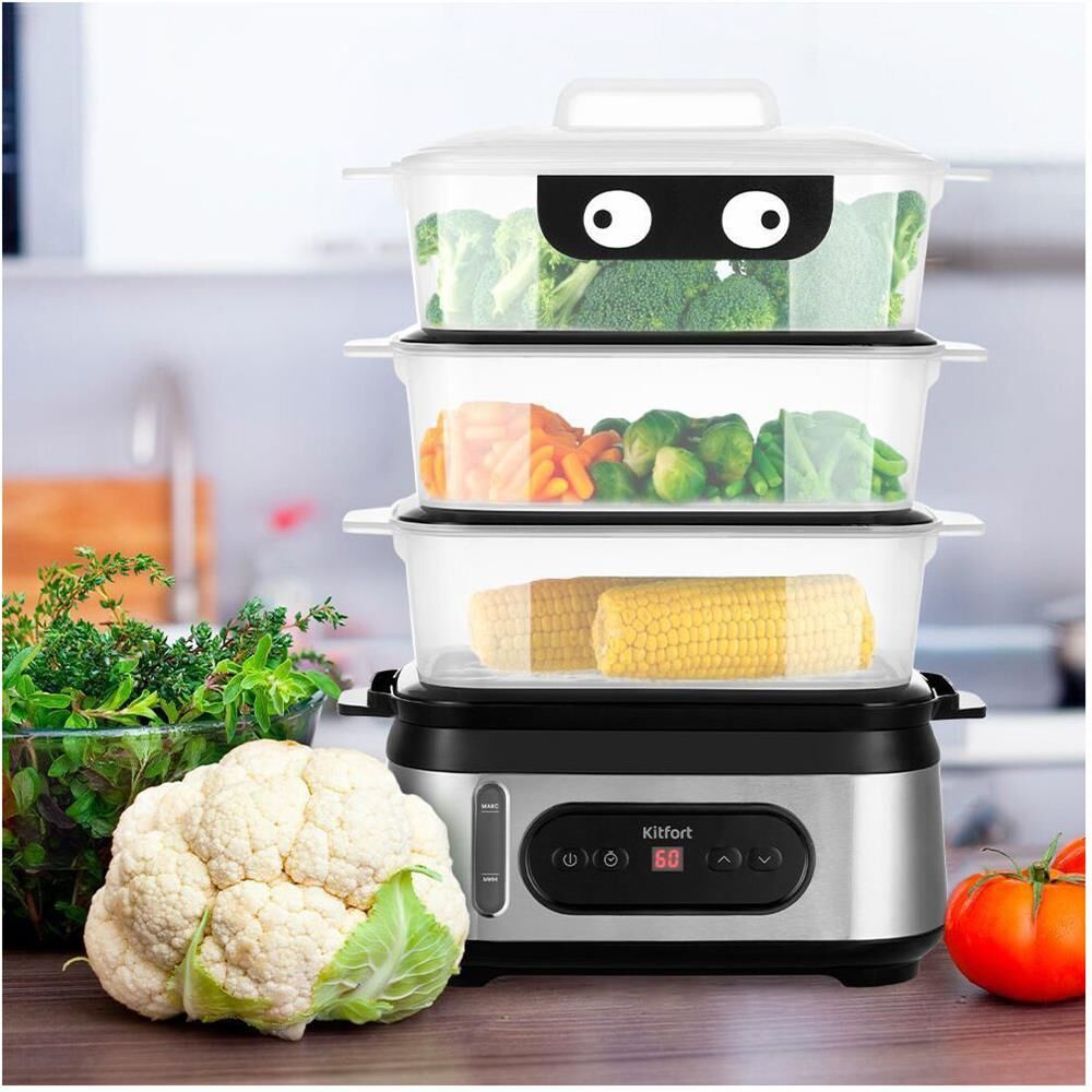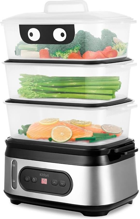 Мощность 800-950 Вт Таймер приготовления до 90 мин с шагом 1 мин Время отложенного старта до 12 ч с шагом 1 ч Ёмкость резервуара для воды 1,5 л Ёмкость корзины 3 л Внутренний размер корзины 232 х 140 х 92 мм Ёмкость чаши для риса 1,5 л Размер чаши для риса 210 х 134 х 80 мм Ёмкость поддона 0,3 л Длина шнура 0,7 м Размер устройства 330 х 214 х 452 мм
