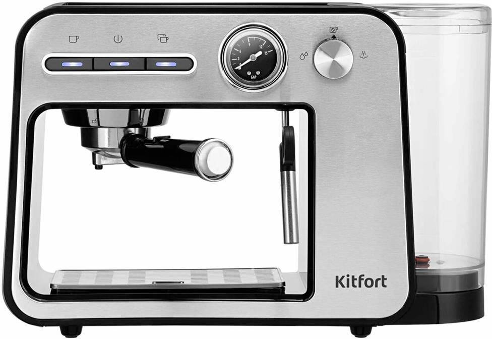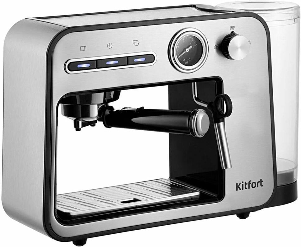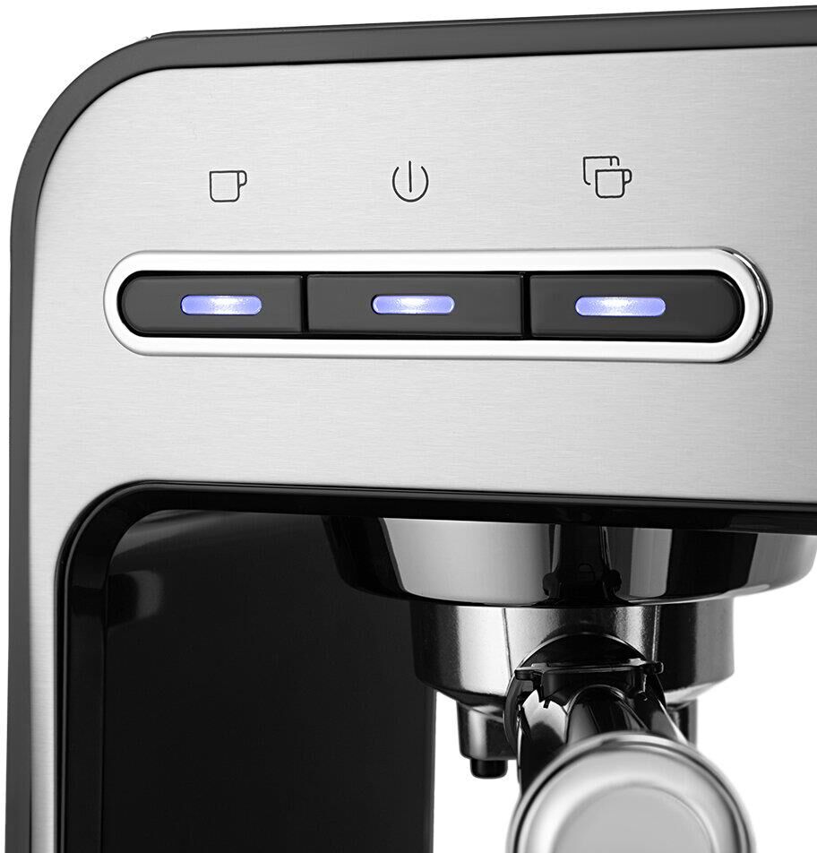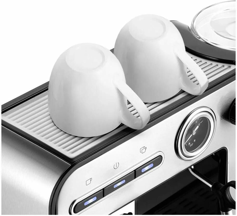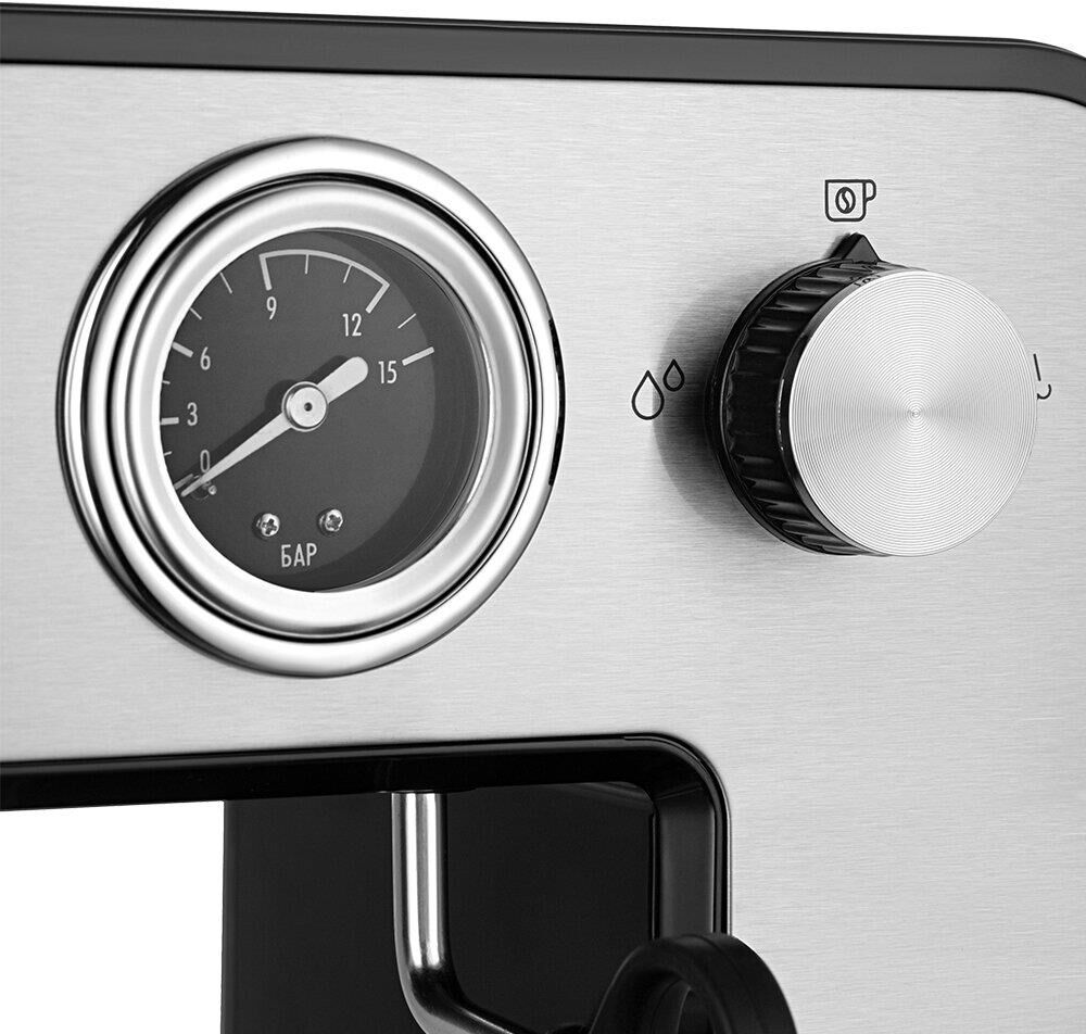 Тип кофеварки рожковая. Используемый кофе молотый. Тип нагревателя бойлер. Мощность 1450 Вт. Давление помпы 15 Бар. Резервуар для воды 1 л. Тип управления электронное. Встроенный манометр есть. Материал корпуса металл/пластик. Цвет серебристый. Размеры (ШхВхГ) 38.5 х 26.1 х 13.6 см. Вес товара 3.4 кг. Длина сетевого кабеля 0.9 м.