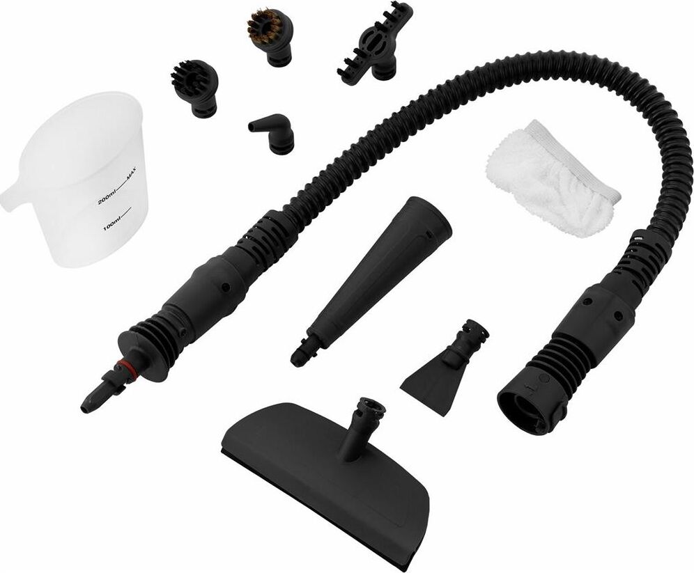 Мощность нагревателя: 1200. Максимальное давление пара: 2.6. Время нагревания: 4. Максимальное количество пара: 30. Количество баков для воды: 1. Емкость первого бака для воды: 0.3. Регулятор расхода пара: на корпусе. Защита от детей: есть. Предохранительный клапан: есть. Длина парового шланга: 0.8. Вес (без принадлежностей): 1.8. Особенности: У пароочистителя есть резервуар для моющего средства ёмкостью 0,15 л, который просто наполняется любым жидким очистителем. Резервуар съёмный и легко моется после работы пароочистителя.. Насадки в комплекте: Струйная насадка, угловая насадка, круглая нейлоновая щётка, круглая латунная щётка, скребок, скребок для стекла и отпаривания тканей, щелевая щётка.. Принадлежности в комплекте: Стакан для воды, тряпка для отпаривания.. Вид пароочистителя: Ручной. Габариты упаковки (ед) ДхШхВ: 0.34x0.19x0.26. Вес упаковки (ед): 3.18. Гарантия: 12 мес.. Размер (ДхШхВ): 240 х 120 х 270 мм. Цвет: белый/фиолетовый. Мощность: 1200 Вт. Давление пара: 2.6 Бар. Производительность пара: 30 г