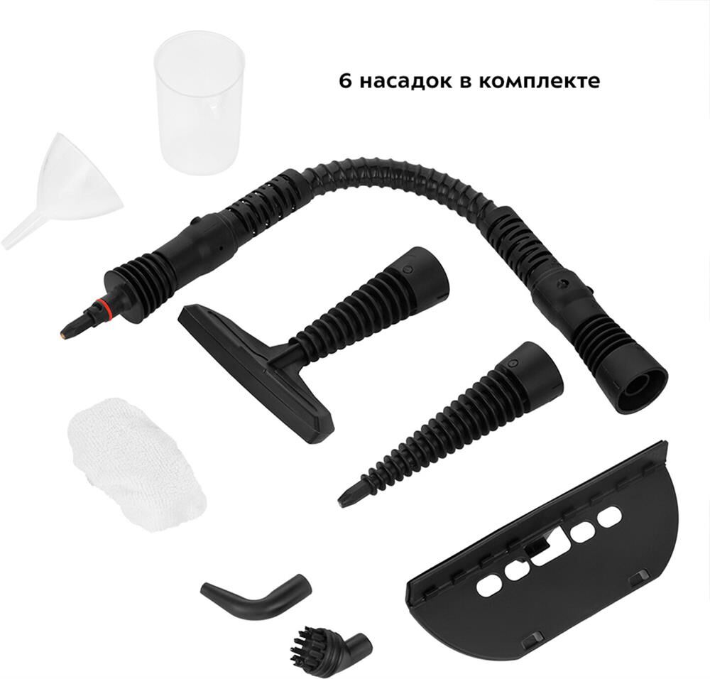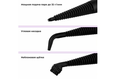 Мощность нагревателя: 1050. Максимальное давление пара: 3.2. Время нагревания: 3. Максимальное количество пара: 32. Количество баков для воды: 1. Емкость первого бака для воды: 0.45. Регулятор расхода пара: на рукоятке. Форсунка точечной струи: есть. Ручная форсунка: есть. Круглая щетка: есть. Вес (без принадлежностей): 1.8. Паровой пистолет: есть. Высоконапорная форсунка: есть. Насадки в комплекте: Струйная насадка, угловая насадка, круглая нейлоновая щетка, паровой шланг, насадка для отпаривания, тряпка для отпаривания, насадка с резиновым скребком.. Вид пароочистителя: Ручной. Габариты упаковки (ед) ДхШхВ: 0.27x0.16x0.25. Вес упаковки (ед): 2.18. Страна производства: Китай. Гарантия: 12 мес.. Размер (ДхШхВ): 155 х 265 х 245 мм. Цвет: черный/зеленый. Мощность: 1050 Вт. Производительность пара: 32 г/мин. В комплекте: паровой пистолет, форсунка точечной струи, круглая щетка, высоконапорная форсунка, ручная форсунка. Давление пара: 3.2 Бар. Регулятор пара: на рукоятке