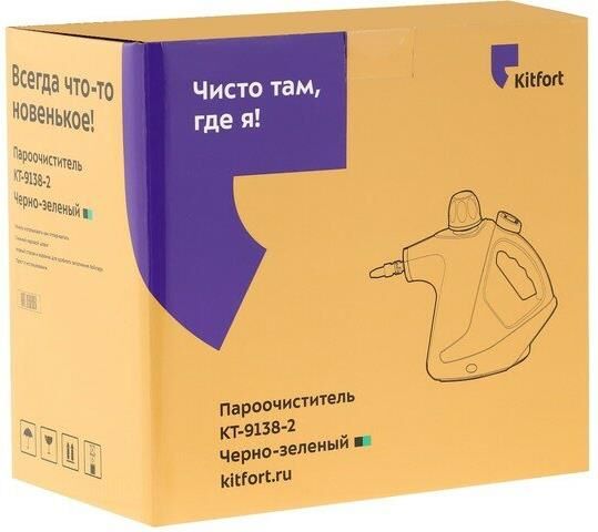 KITFORT Пароочиститель ручной КТ-9138-2, черный/зеленый