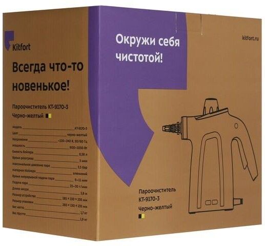 KITFORT Пароочиститель ручной КТ-9170-3, черный/желтый