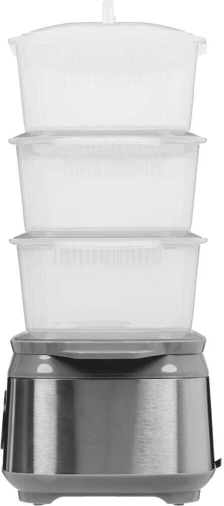 Тип управления: электронный. Мощность: 1050. Количество ярусов: 3. Возможность долива воды: есть. Дисплей: есть. Чаша для риса: есть. Общий объем паровых корзин: 9. Объем резервуара для воды: 1.5. Углубления для варки яиц: есть. Материал паровых корзин: пластик. Таймер отключения: есть. Вес товара: 2.3. Таймер отсрочки запуска: есть. Индикатор уровня воды: есть. Длина сетевого кабеля: 0.7. Материал корпуса: пластик. Габариты упаковки (ед) ДхШхВ: 0.34x0.24x0.32. Вес упаковки (ед): 2.9. Страна производства: Китай. Гарантия: 12 мес.. Отсрочка запуска: до 12 ч. Размеры (ШхВхГ): 330 х 455 х 194 мм. Цвет: серый и серебристый. Мощность: 1050 Вт. Цвет: серый и серебристый. Общий объем паровых корзин: 9 л. Количество ярусов: 3. Особенности: возможность долива воды, дисплей, таймер отключения. Объем резервуара для воды: 1.5 л