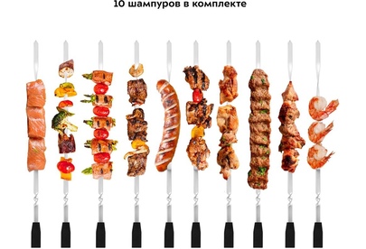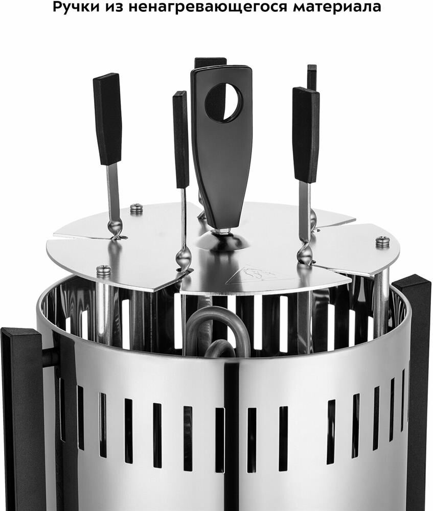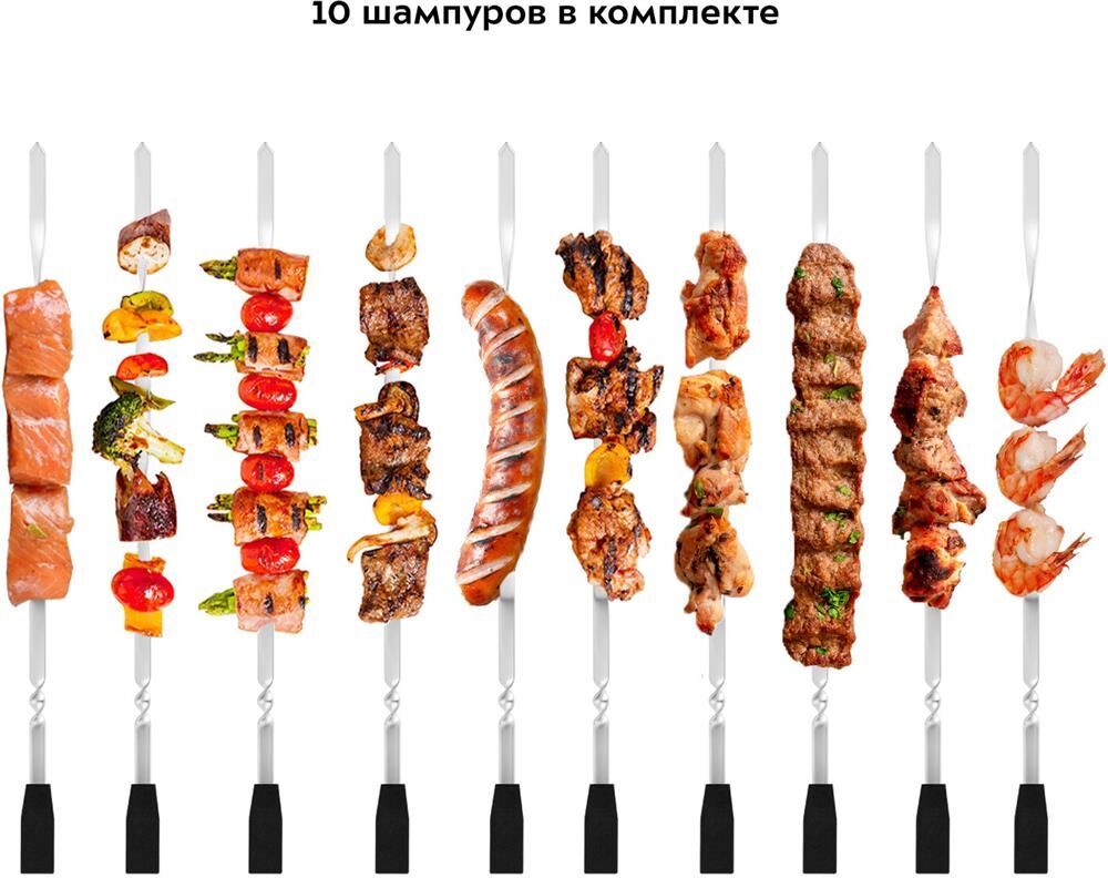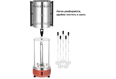 Тип устройства: Шашлычница электрическая. Мощность: 900. Особенности: Шампуры 10 шт.. Электропитание: от бытовой сети. Материал корпуса: алюминий. Материал рабочей части: алюминий. Вес: 1.8. Габариты упаковки (ед) ДхШхВ: 0.19x0.187x0.39. Вес упаковки (ед): 2.22. Страна производства: Китай. Гарантия: 12 мес.. Размеры (ШхВхГ): 217х460х177 мм. Цвет: нержавеющая сталь/оранжевый. Цвет: нержавеющая сталь/оранжевый. Мощность: 900 Вт. Материал рабочей части: алюминий. Электропитание: от бытовой сети. Материал корпуса: алюминий. Размеры (ШхВхГ): 217х460х177 мм
